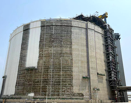 北燃天津南港LNG應(yīng)急儲備項(xiàng)目的薄膜型LNG儲罐是目前全球最大的陸上LNG薄膜罐,是為北京市提供安保用氣、加速京津冀一體化的重點(diǎn)項(xiàng)目,我司承攬此項(xiàng)目二、三階段共計(jì)六臺薄膜罐的防潮層施工工作